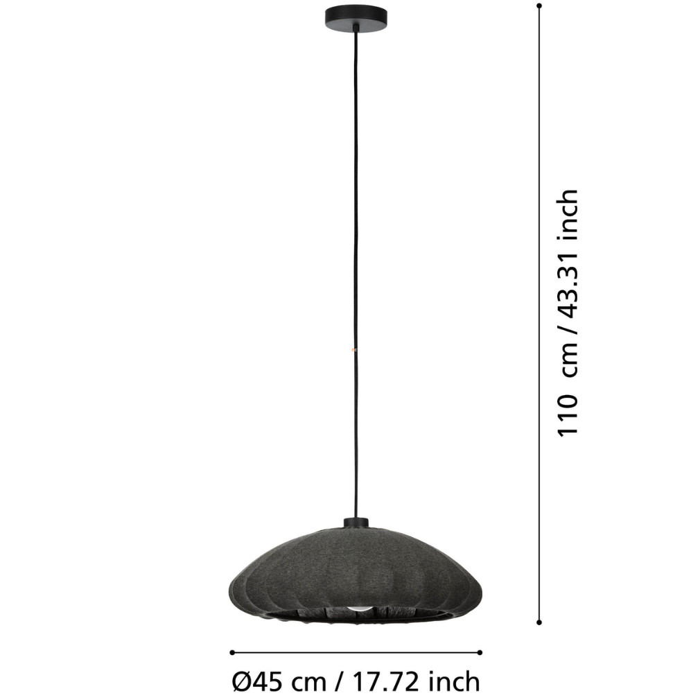 A Barlaston Eglo 43961 textil függesztett lámpa 45 cm átmérővel és 110 cm magassággal rendelkező modell, amelyet az EGLO gyárt. A lámpatest acél és textil anyagból készült, fekete és szürke színkombinációval. Egy darab E27 foglalattal rendelkezik, amelyhez cserélhető fényforrás illeszthető, a fényforrást azonban a csomag nem tartalmazza. A termék IP20 védettségi szinttel rendelkezik, így beltéri használatra alkalmas. A lámpa tömege 0,902 kg, csomagolási méretei 46x46x15 cm. A logisztikai kódja 43961.