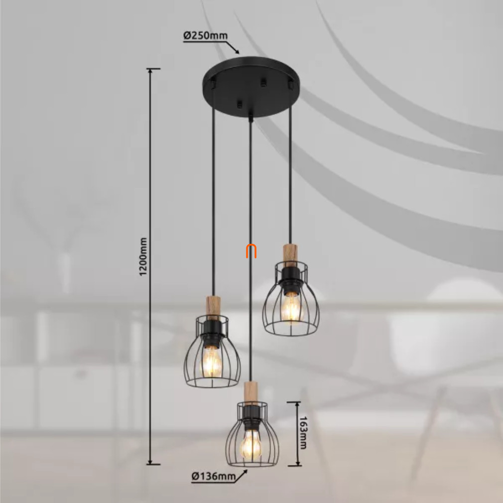 Textil kábeles függesztett lámpa 3 foglalattal - Mina Globo 15326-3H1