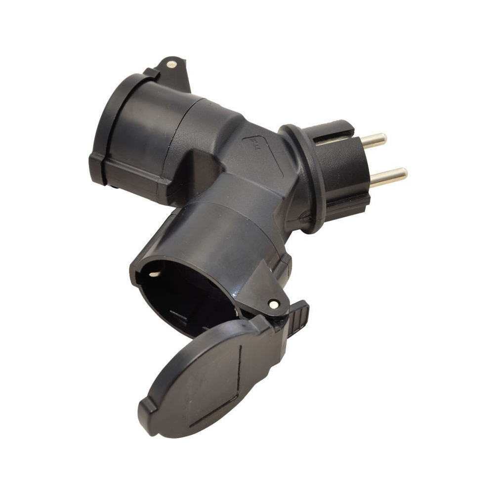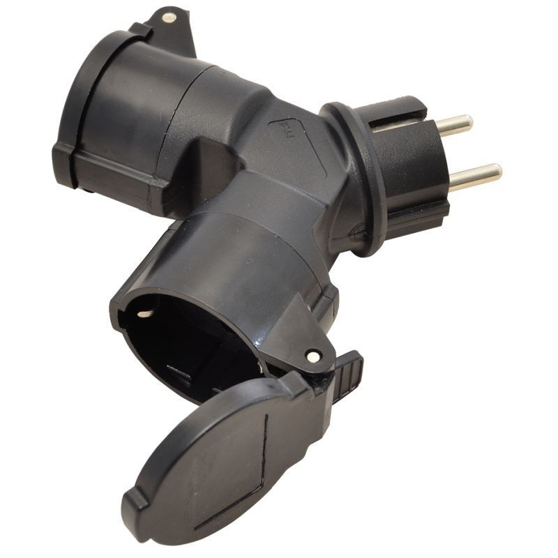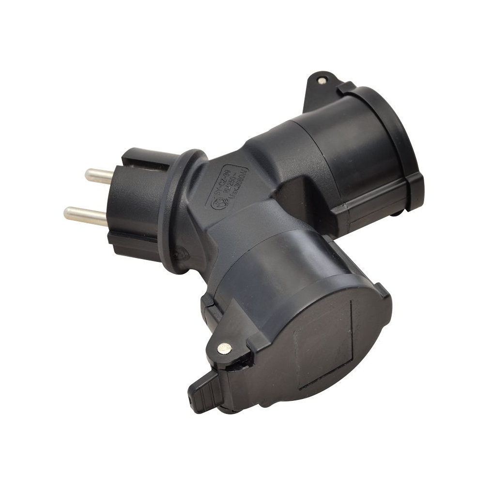 Többférőhelyes átalakító csatlakozó, fekete 2xSCHUKO, 16A, 3680W, TICS-212GD Tracon