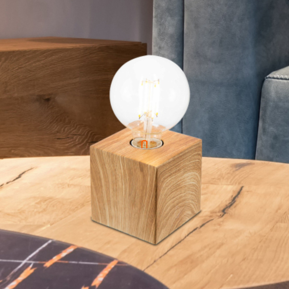 Tölgyfa hatású asztali kocka lámpa, 10 cm - Leonie Globo 502401466X, 1xE27 foglalattal, 230 V