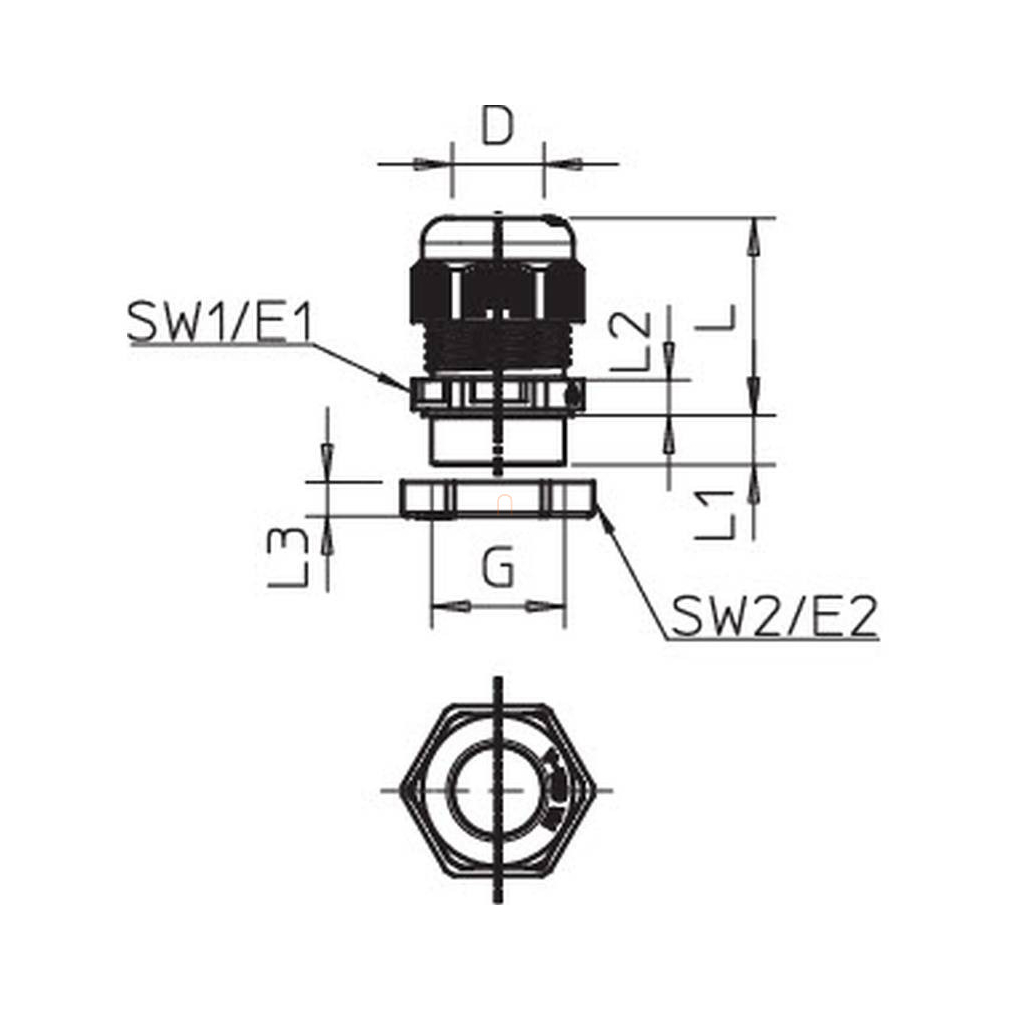 Tömszelence M25 +anya 9-17mm IP68 szürke 2022768 OBO V-TEC VM25+ LGR