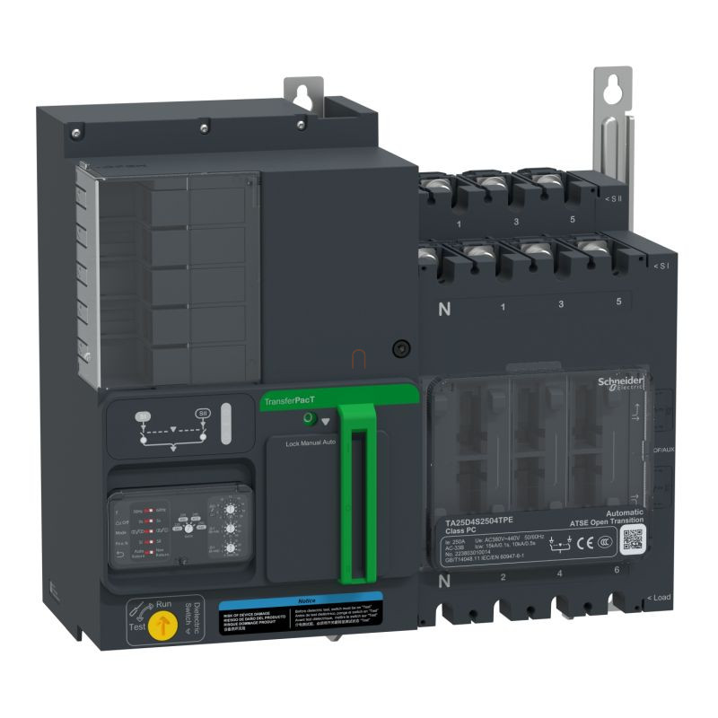Schneider Electric TransferPacT - TA25D4S2004TPE - automatikus átkapcsoló - 250A tokozat 200A 4P potméteres beállítófelület 400V