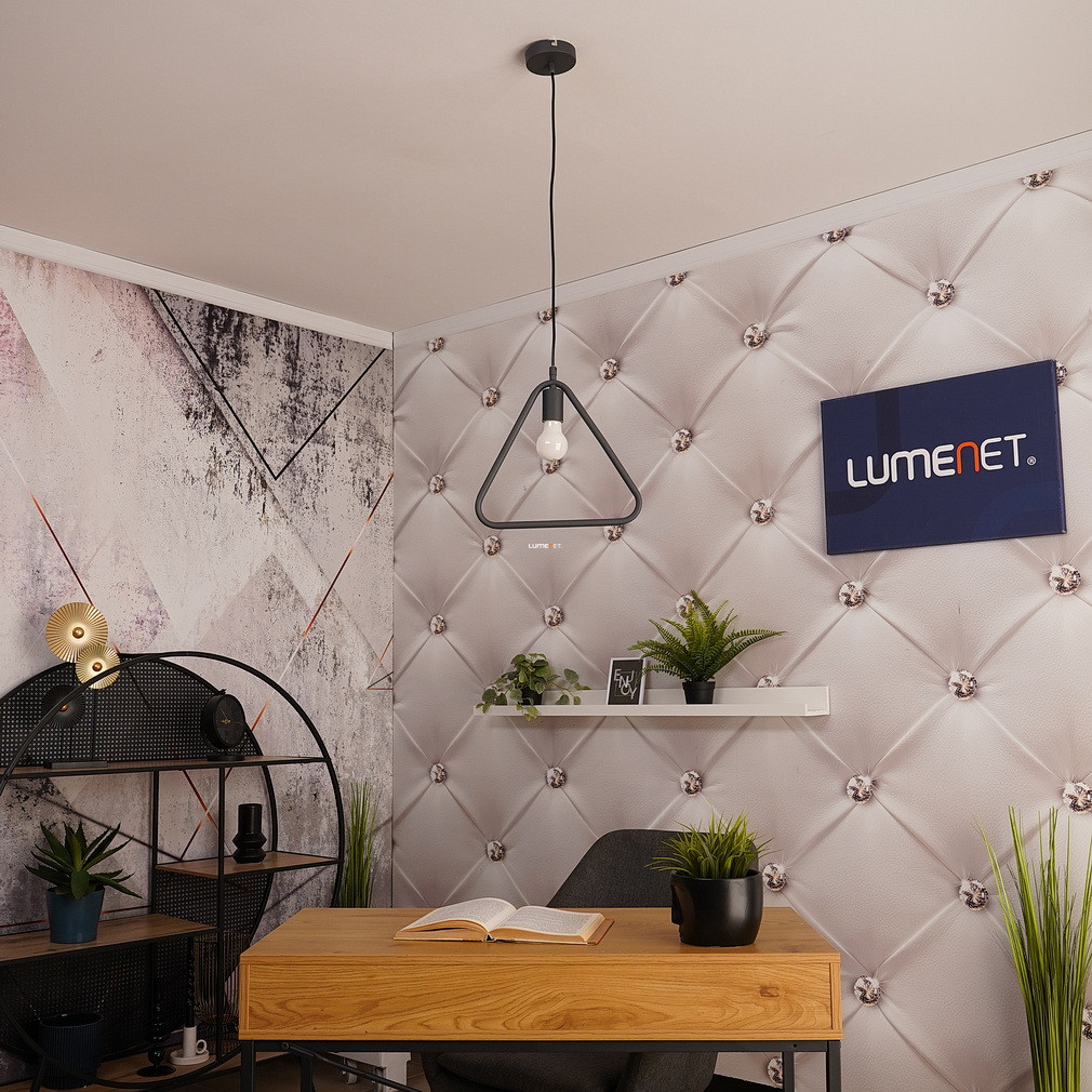 A Triangulum függesztett lámpa fekete színben, OS-GI-E27-10-DEC cikkszámmal, a GTV gyártásában készült. A lámpatest fém anyagból készült, modern geometriai formavilággal, amely a lakásvilágítás területén esztétikus megjelenést biztosít. E27 foglalattal rendelkezik, egy darab cserélhető fényforrás elhelyezésére alkalmas, amely nem része a csomagnak. A lámpa teljes magassága 1850 mm, hosszúsága 380 mm, védettségi szintje IP20, így beltéri használatra alkalmas. A termék tömege 0,76 kg, csomagolási méretei 35x35x7 cm. A lámpa színhőmérséklete, teljesítménye és fényárama a behelyezett fényforrástól függően változtatható, így a felhasználó igényeihez igazítható a világítás jellege.