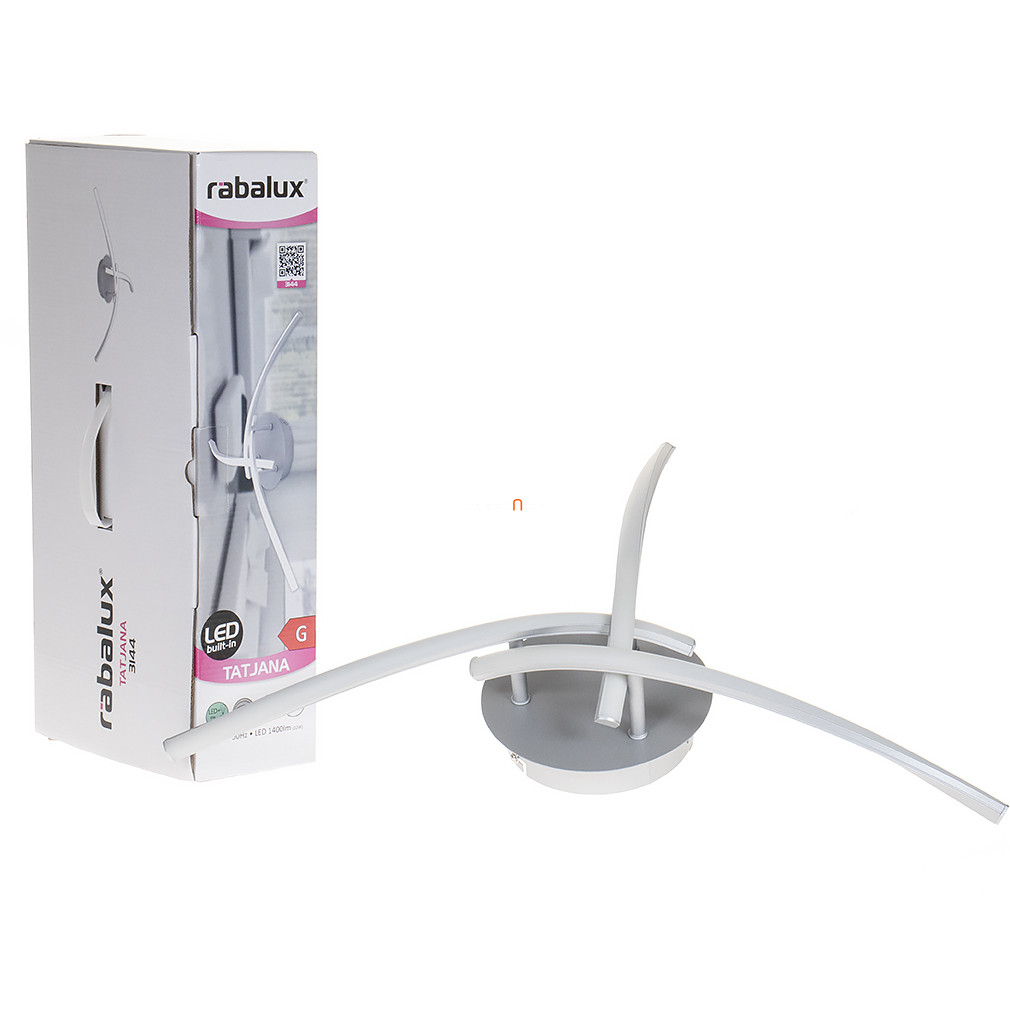 A Triplán hajlított mennyezeti LED lámpa, Tatjana Rábalux 3144 modell, modern designnal és hatékony világítással rendelkezik. A lámpatest 22 W teljesítményű integrált LED modullal működik, amely 1400 lumen fényáramot biztosít hidegfehér (4000 K) színhőmérsékleten. A termék átmérője 470 mm, magassága 110 mm, így ideális választás tágasabb helyiségek általános megvilágításához. Az IP20 védettségű lámpa fém és műanyag anyaghasználattal, ezüst-fehér színkombinációban készül. Az átlagos élettartam 15 000 óra, a beépített LED modulnak köszönhetően nincs szükség izzócserére. A csomagolási méretek 46 x 22 x 11 cm, a termék tömege 1,1 kg. A Rábalux által gyártott lámpa főként beltéri használatra alkalmas, és a modern lakásvilágítási igényekhez igazodik.
