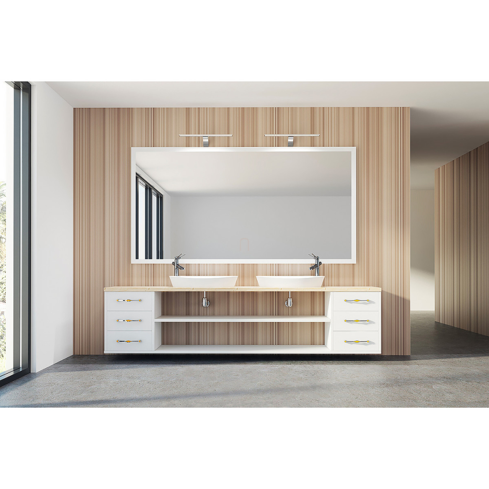 A Kanlux Astim 34934 tükörvilágító LED lámpa 1250 lumen fényárammal és hidegfehér, 4000 K színhőmérséklettel rendelkezik, így kiváló fényviszonyokat teremt fürdőszobákban vagy öltözőkben. A lámpatest 12 W teljesítményű integrált LED modult tartalmaz, amelynek fényhasznosítása 104 lm/W. A fehér színű, alumínium ház IP44 védettséggel rendelkezik, így fröccsenő víz ellen védett. A termék méretei: 600 mm hosszúság, 100 mm szélesség és 44 mm magasság, tömege 0,43 kg. A LED modul tartozék, így nincs szükség külön fényforrásra. A Kanlux által gyártott tükörvilágító LED lámpa modern és letisztult megjelenést biztosít bármely helyiségben.
