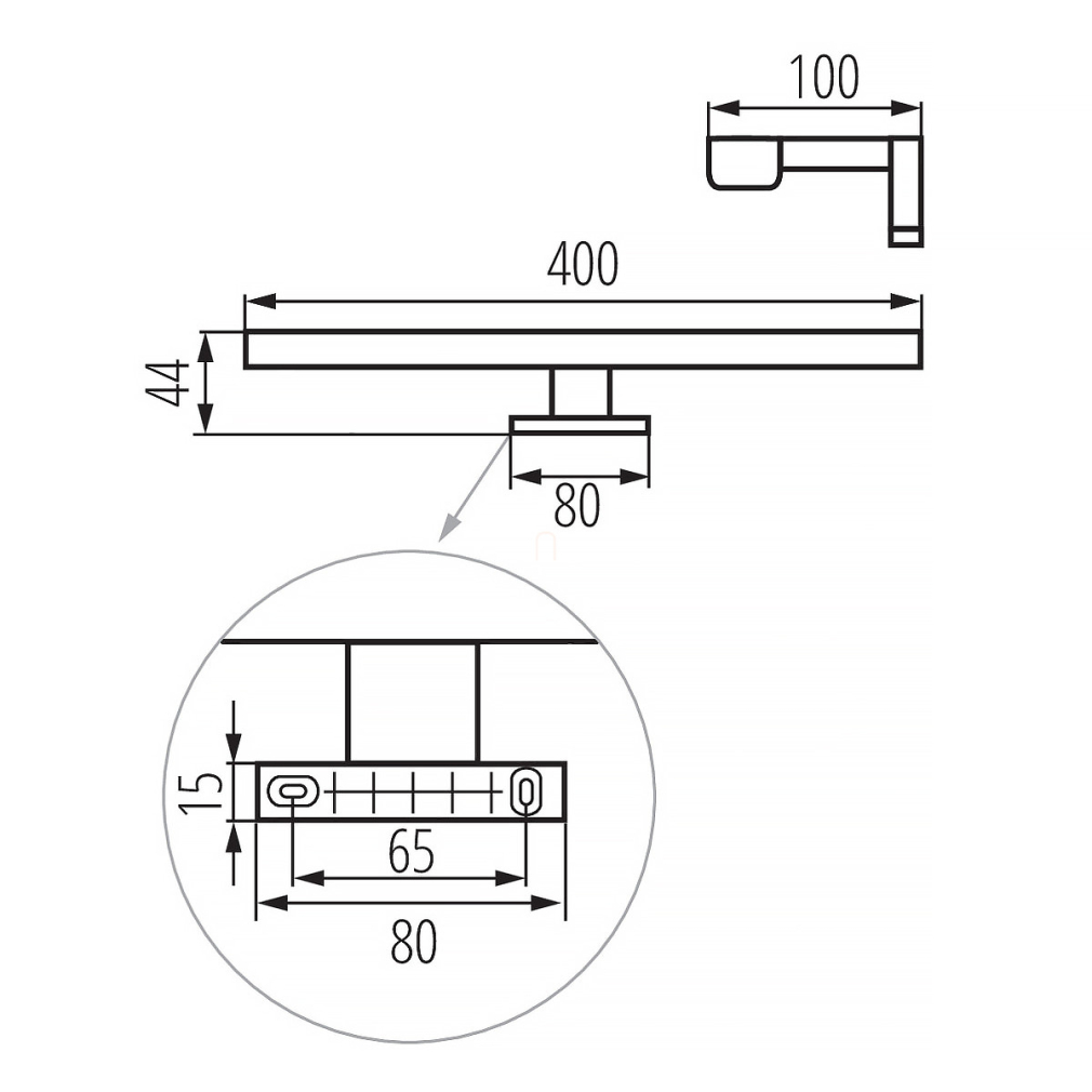 Az Astim Kanlux 34931 tükörvilágító LED lámpa 680 lumen fényárammal és 4000 K színhőmérséklettel hidegfehér fényt biztosít. A lámpatest beépített 8 wattos LED modullal működik, amelynek fényhasznosítása eléri a 101 lm/W értéket. Az eszköz alumínium házzal és fehér színben készül, IP44 védettsége révén alkalmas fürdőszobai vagy párás környezetben történő használatra is. A lámpatest méretei: 400 mm hosszúság, 100 mm szélesség és 44 mm magasság, tömege pedig 0,33 kg. A termék a Kanlux márkához tartozik, és a LED fényforrás a csomag részét képezi.