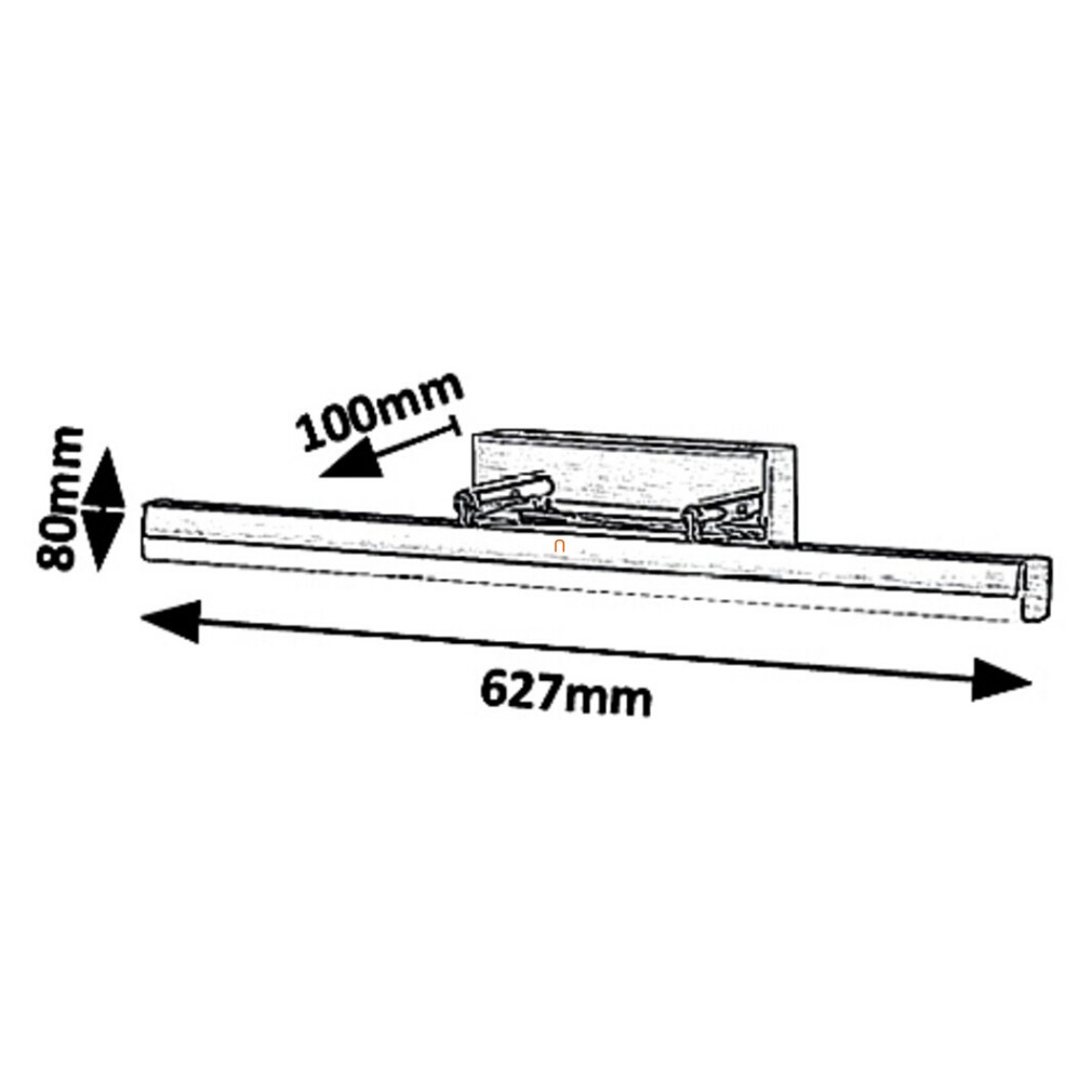 A Silas Rábalux 5729 tükörvilágító LED lámpa modern stílusú fürdőszobai világítási megoldás, amely 18 W teljesítményű beépített LED modullal rendelkezik. A lámpatest bronz színű, fém és műanyag anyaghasználattal készül, így tartós és esztétikus megjelenést biztosít. 1700 lumen fényáramot bocsát ki hidegfehér, 4000 K színhőmérsékleten, amely optimális megvilágítást nyújt tükör fölé szerelve. A lámpa IP44-es védettséggel rendelkezik, így ellenáll a fröccsenő víznek, ezáltal fürdőszobai használatra is alkalmas. A termék átlagos élettartama 20 000 óra, nem szabályozható, a fényforrás cseréje nem szükséges, mivel a LED modul a lámpatest része. Méretei: 100 mm hosszúság, 627 mm szélesség, 80 mm magasság.