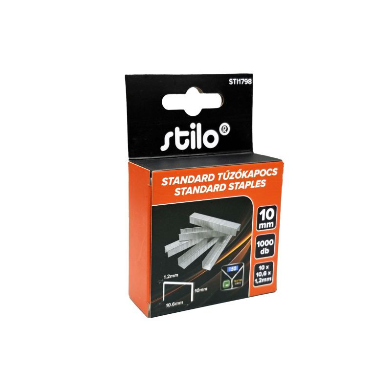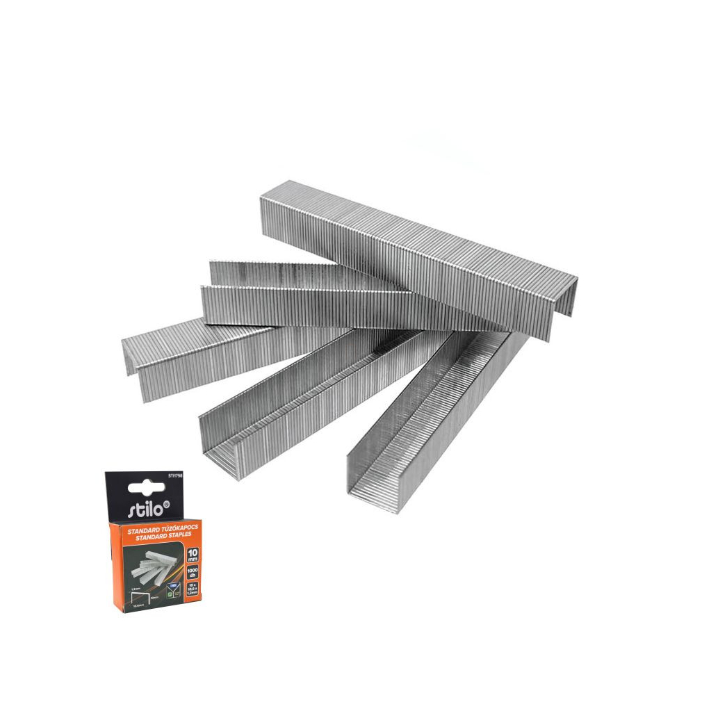 Tűzőkapocs szögletes 10mm, 1000db/csomag, méret: 10x10,6x1,2mm Stilo STI1798