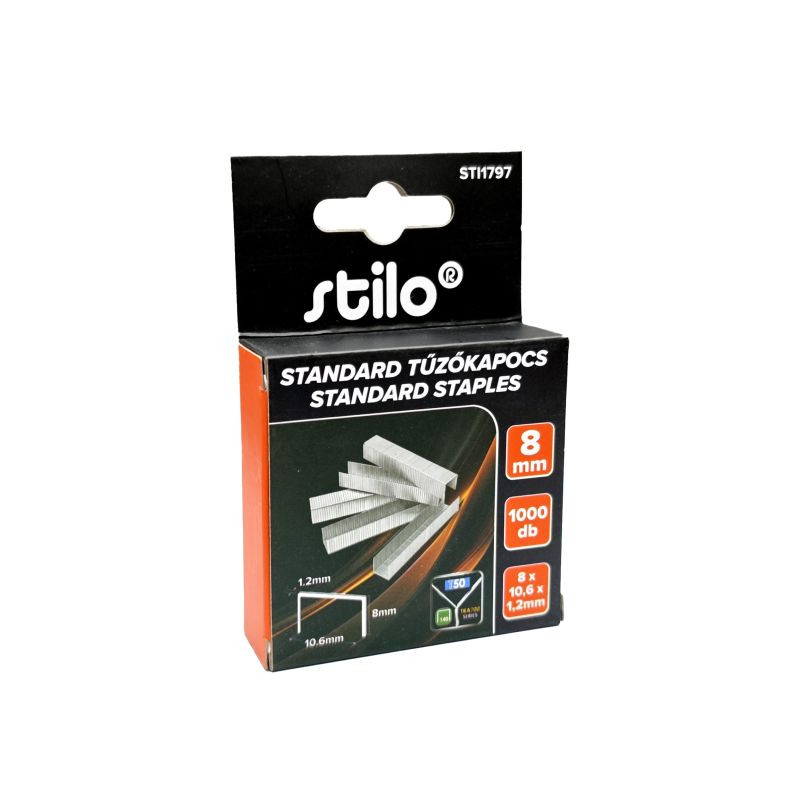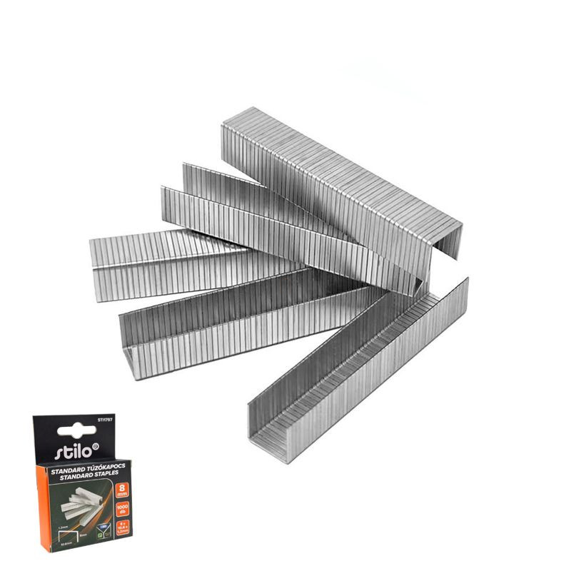 Stilo tűzőkapocs szögletes 8mm, 1000db/csomag, méret: 8x10,6x1,2mm STI1797