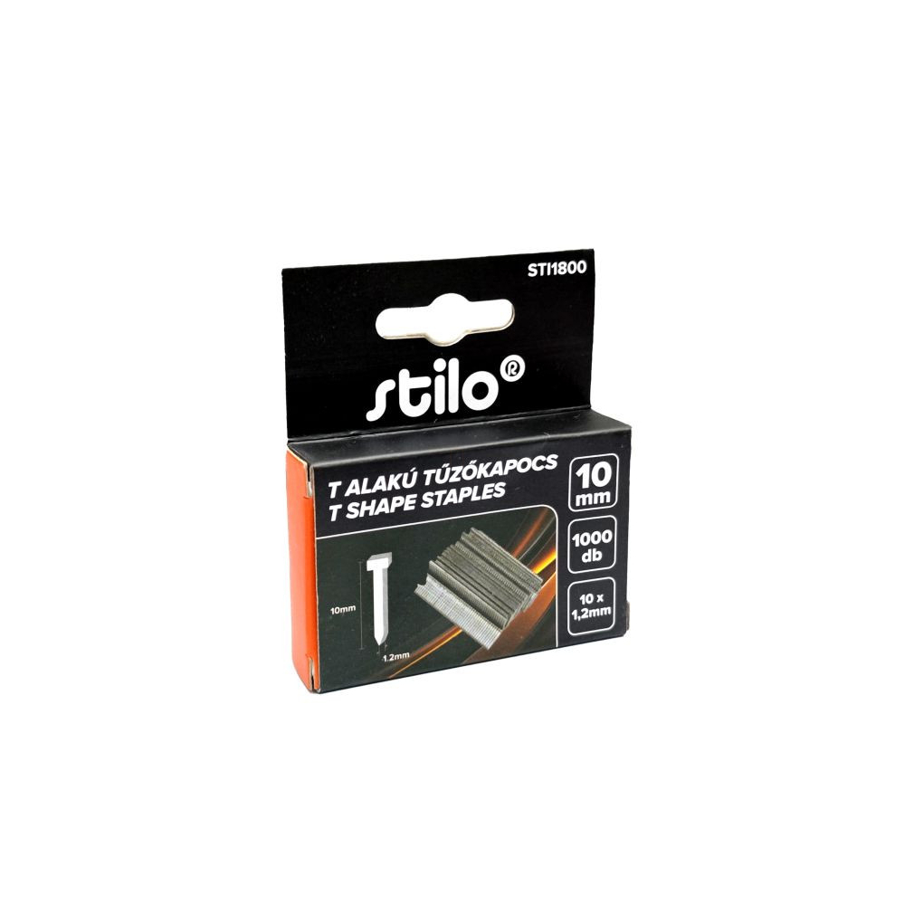 Tűzőkapocs T alakú 10mm, 1000db/csomag, méret: 10x1,2mm Stilo STI1800