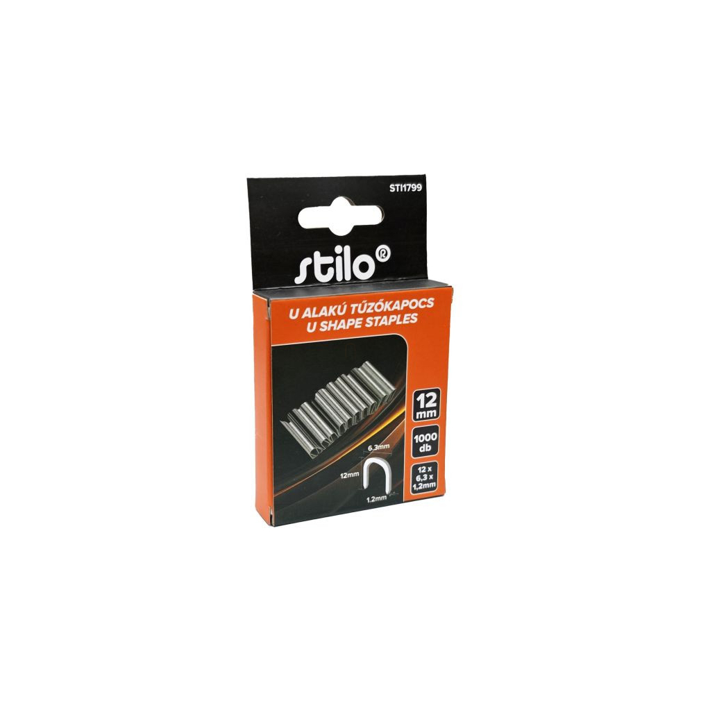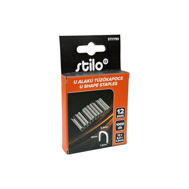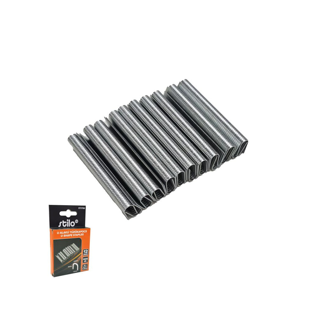 Tűzőkapocs U alakú 12mm, 1000db/csomag, méret: 12x6,3x1,2mm Stilo STI1799