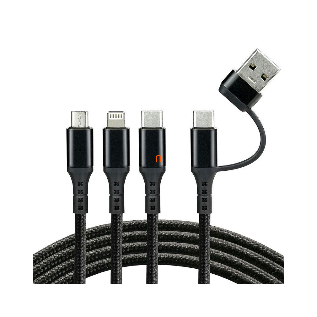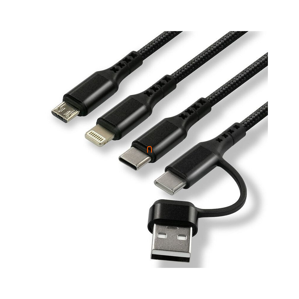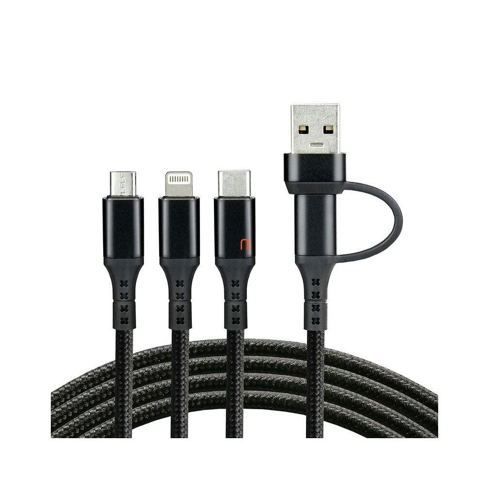 USB-C (USB-A adapterrel) töltőkábel 3 az 1-ben Everactive CBB-1.2ALL, 3A, 480Mbps, 1.2m, fekete, USB type-C / lightning / micro USB kimenettel