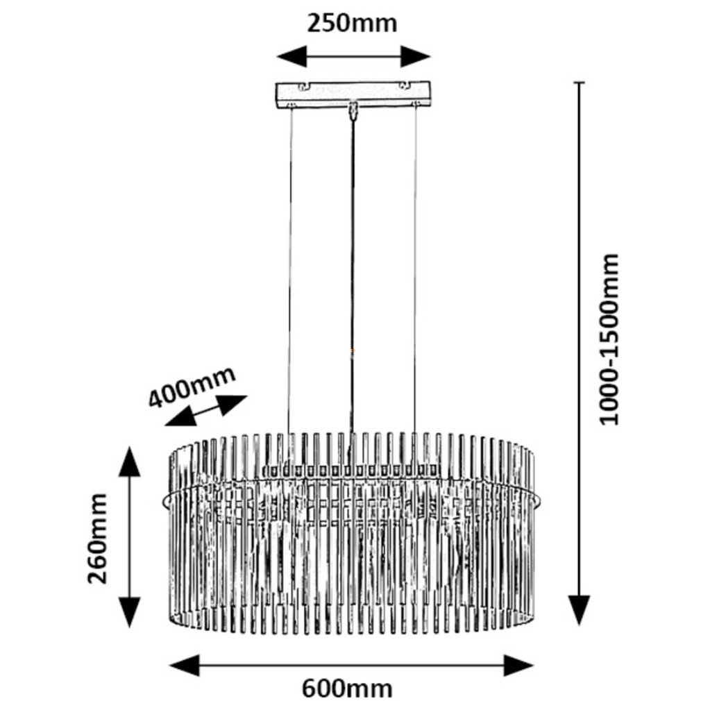 Az Inesa Rábalux 72262 üveg pálcás függesztett lámpa ovális formavilágával és modern megjelenésével ideális választás lakásvilágítási megoldásokhoz. A lámpatest két darab E27-es foglalattal rendelkezik, amelyekbe cserélhető fényforrás helyezhető, így a fényáram, a fényszín, a teljesítmény és a színhőmérséklet igény szerint szabályozható. A lámpa fő anyaga fém és üveg, matt fekete és füstszínű kivitelben, amely elegáns összhatást biztosít. A termék 230 V névleges feszültséggel működik, IP20-as védettséggel rendelkezik, így beltéri használatra alkalmas. A lámpa méretei: hossza 600 mm, szélessége 260 mm, magassága 1500 mm, tömege 4,079 kg. A csomagolás mérete 62 x 42 x 16 cm. A lámpatest nem tartalmaz fényforrást, így a megfelelő izzók külön választhatók hozzá. A gyártó a Rábalux, a logisztikai kód 72262.