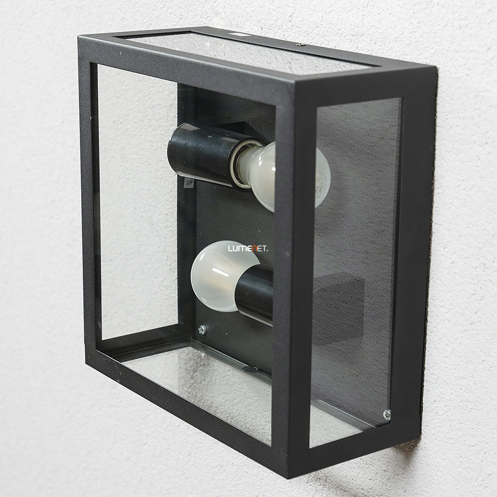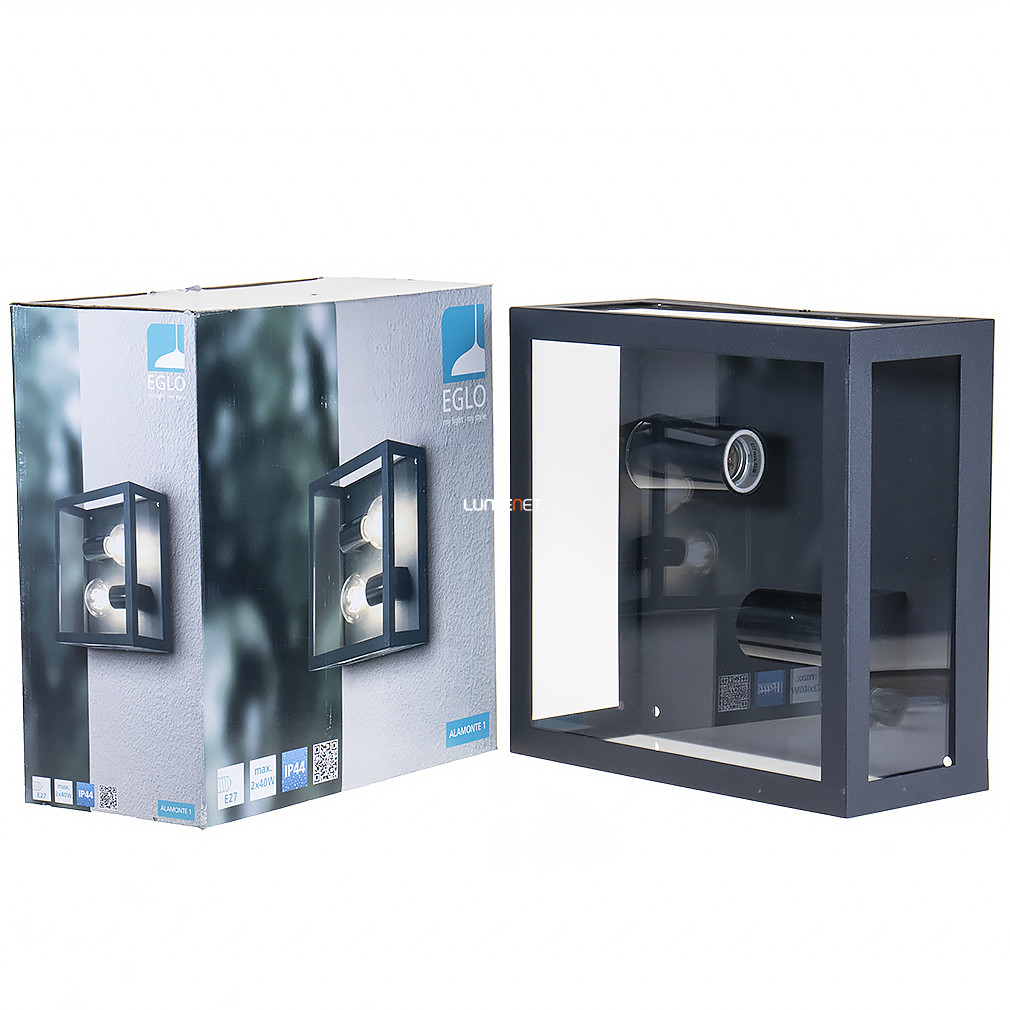 Az Eglo 94832 Alamonte 1 kültéri fekete fali/mennyezeti lámpa 2 darab E27 normál foglalattal van szerelve, kiválóan alkalmas erkélyek, vagy teraszok kültéri megvilágítására, homlokzatra, mennyezetre szerelve. Modern anyagfelhasználása kialakítása remekül passzol a filament retrofit LED fényforrásokhoz. A cserélhető fényforrás lehetővé teszi a kisebb, vagy nagyobb fényáram választást. Az átlátszó üveg és a 2 darab E27 foglalat hatékony világítást tesz lehetővé.