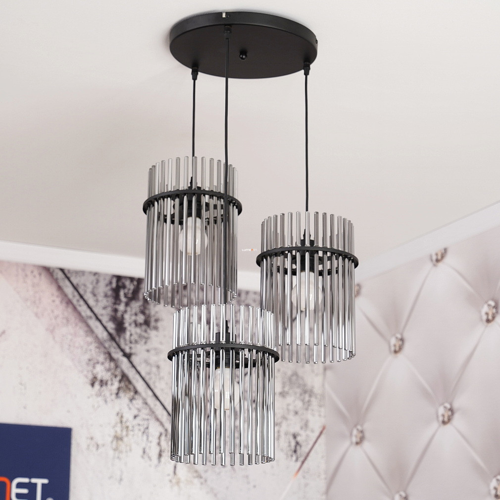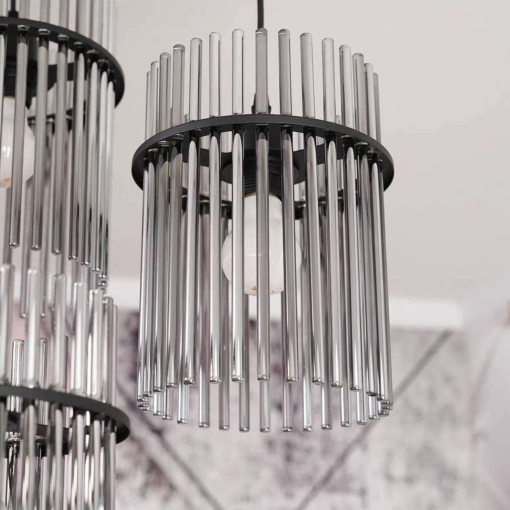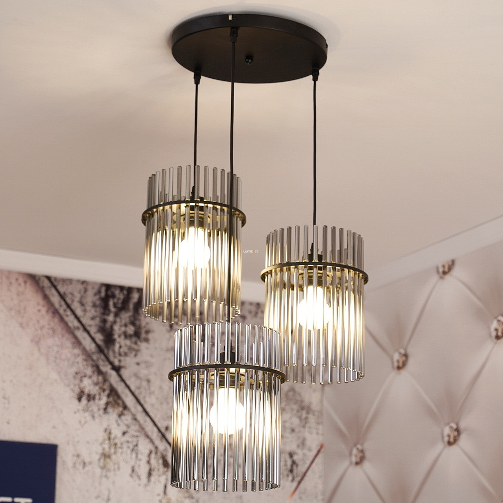 A Gorley Globo 15698-3HR üvegpálcás függesztett lámpa három E27-es foglalattal rendelkezik, amely lehetővé teszi a cserélhető fényforrások használatát. A lámpatest fő anyaga üveg és fém, felülete matt fekete és füstszínű elemeket ötvöz, így modern és elegáns megjelenést biztosít. A termék átmérője 470 mm, magassága 1400 mm, így ideális nagyobb helyiségek megvilágítására is. A lámpa IP20 védettségi szinttel rendelkezik, amely beltéri használatra alkalmas. A névleges feszültség 230 V, a fényforrásokat a csomag nem tartalmazza. A logisztikai kód 15698-3HR, a termék tömege 5,03 kg. A terméket a Globo. gyártja, csomagolási méretei 33x33x21 cm.