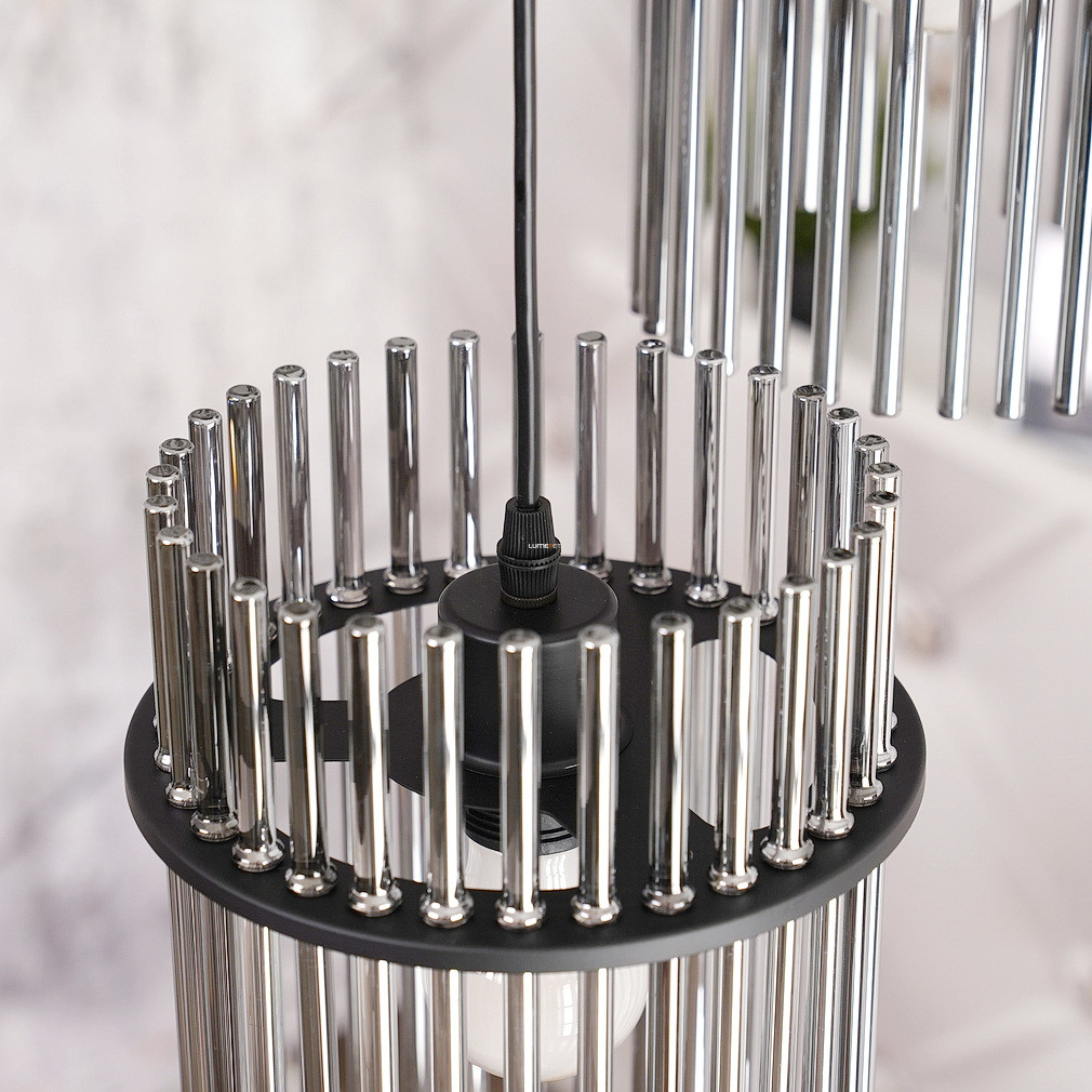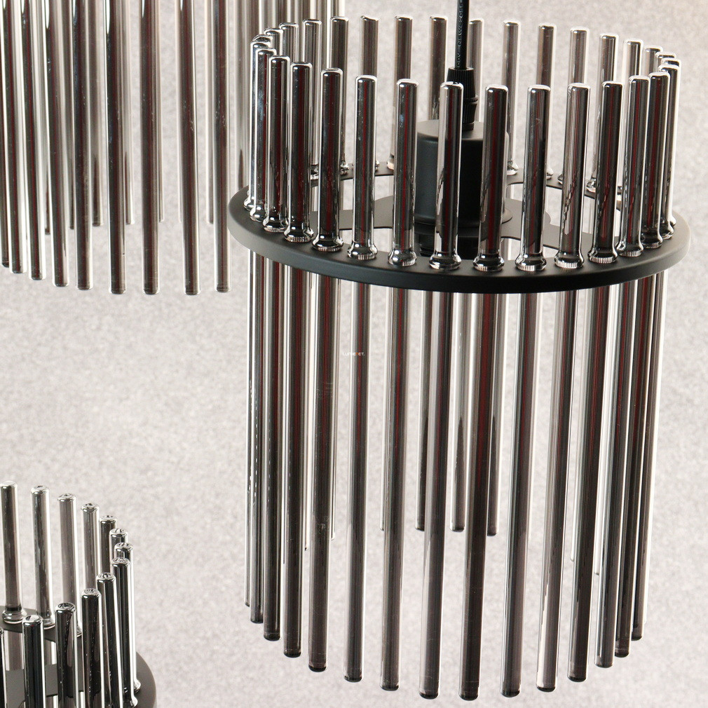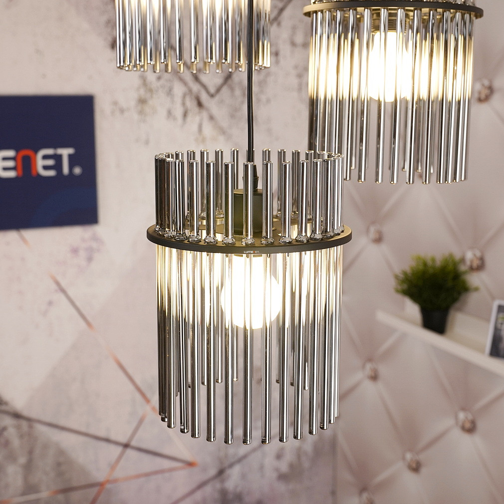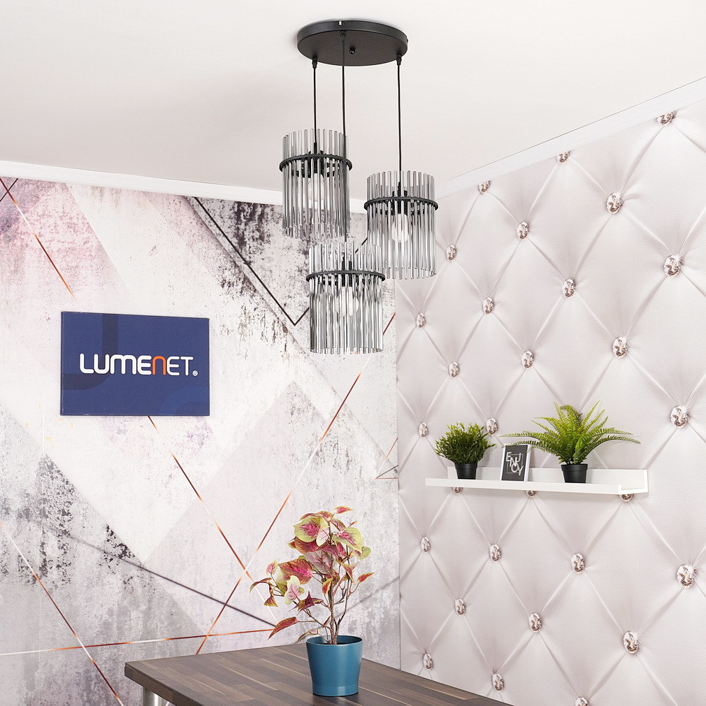 A Gorley Globo 15698-3HR üvegpálcás függesztett lámpa három E27-es foglalattal rendelkezik, amely lehetővé teszi a cserélhető fényforrások használatát. A lámpatest fő anyaga üveg és fém, felülete matt fekete és füstszínű elemeket ötvöz, így modern és elegáns megjelenést biztosít. A termék átmérője 470 mm, magassága 1400 mm, így ideális nagyobb helyiségek megvilágítására is. A lámpa IP20 védettségi szinttel rendelkezik, amely beltéri használatra alkalmas. A névleges feszültség 230 V, a fényforrásokat a csomag nem tartalmazza. A logisztikai kód 15698-3HR, a termék tömege 5,03 kg. A terméket a Globo. gyártja, csomagolási méretei 33x33x21 cm.