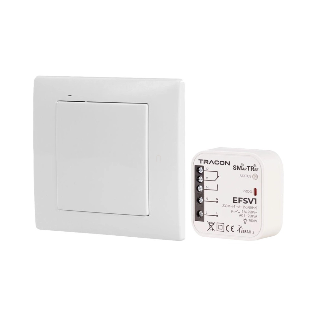 Vezeték nélküli vezérlő kész., 1 csatornás, fali nyomógom 5A, 1 NO/1 NC, 868.32 MHz EFSV1 Tracon