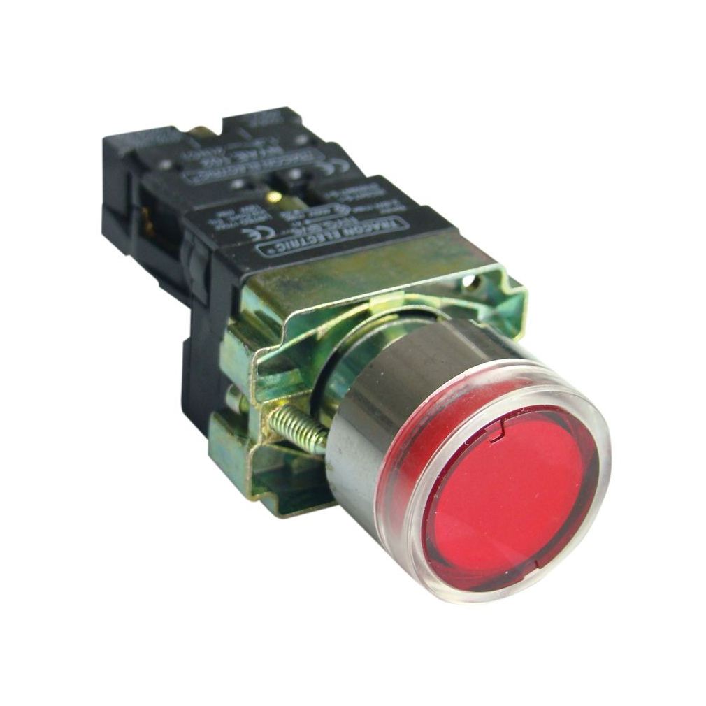 Világító nyomógomb, kerek, piros, 1Z, 230VAC, glimm izzó, 22mm NYGBW33P Tracon