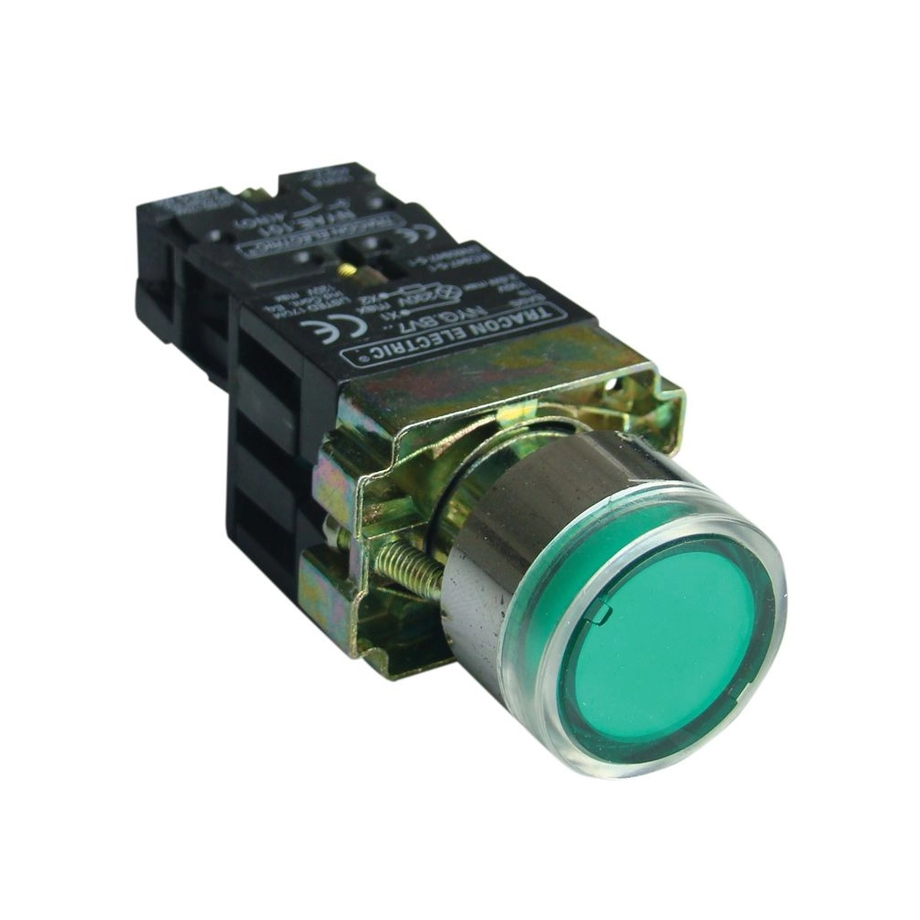 Világító nyomógomb, fémalap, előtét, zöld, glim, izzó nélkül 1×NO, 130V IP42 NYGBW3371Z Tracon