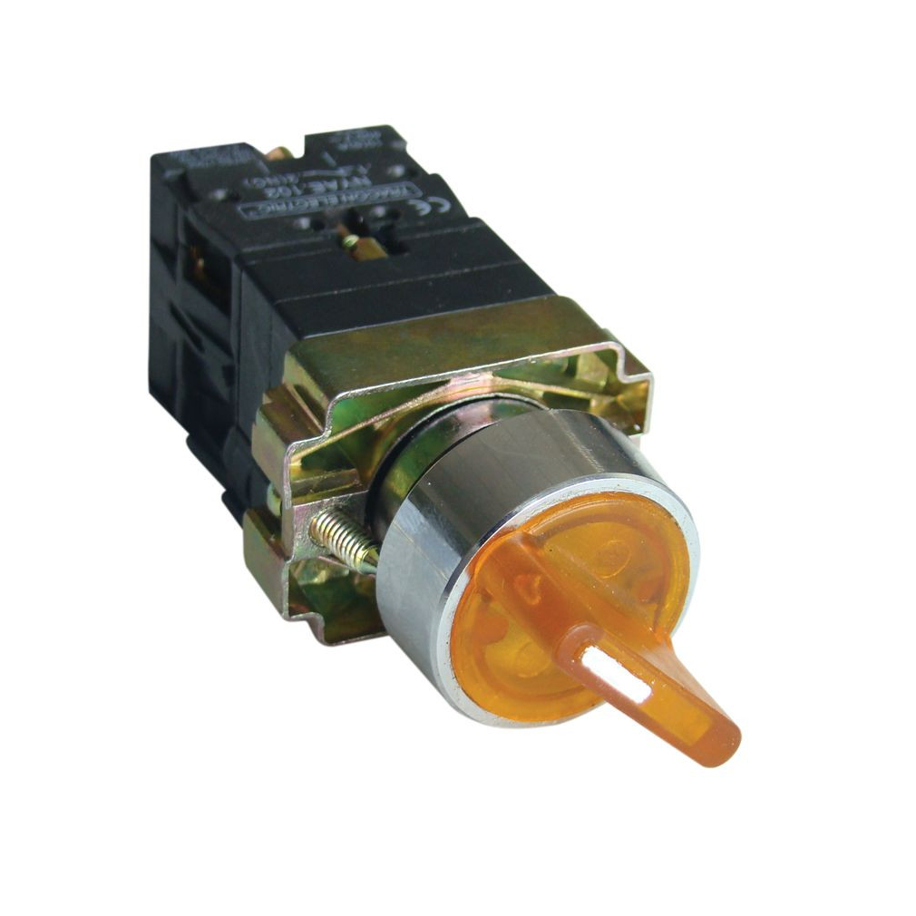 Világítókaros kapcsoló, fémalap, sárga, LED, kétállású 1×NC+1×NO, 3A IP42 NYGBK2565S Tracon
