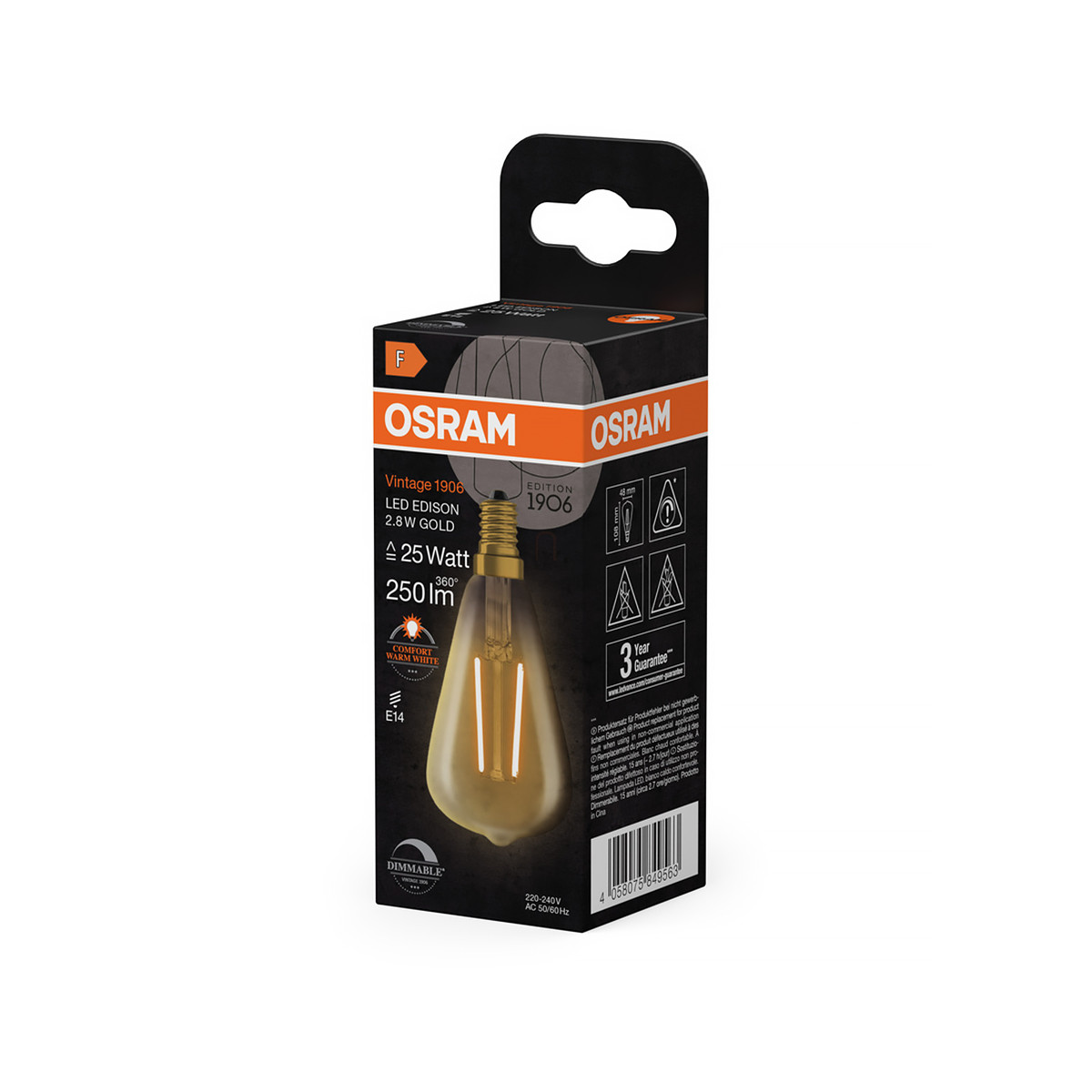 Osram Vintage 1906 Classic Edison E14 LED, 2.8 W, 250 lm, 2200 K, dimmelhető