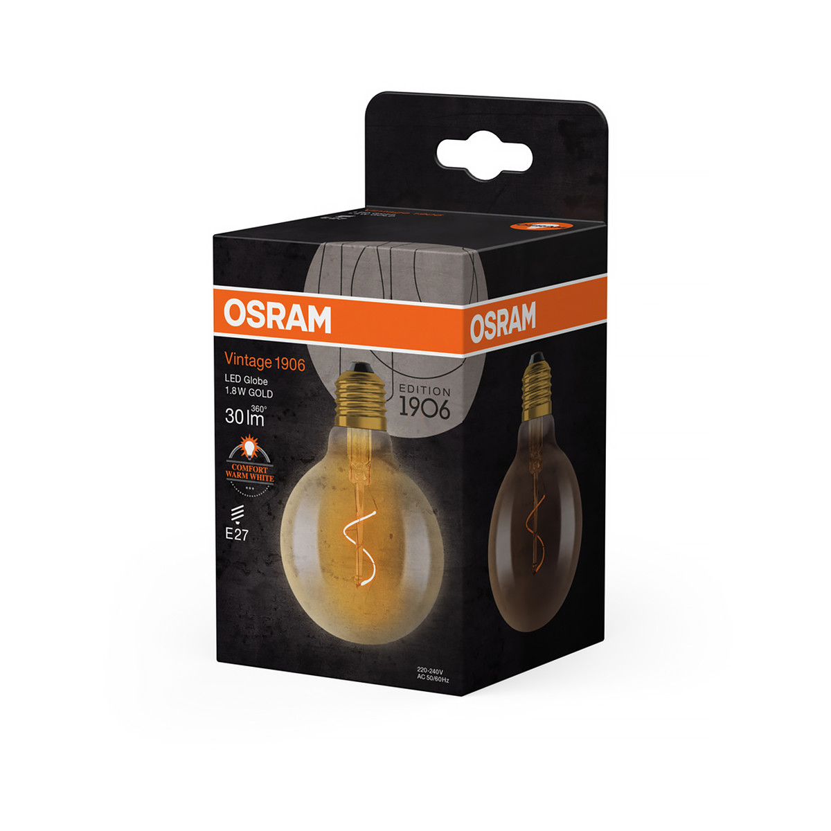 Osram Vintage 1906 Classic Globe E27 LED, 1.8 W, 30 lm, 2200 K