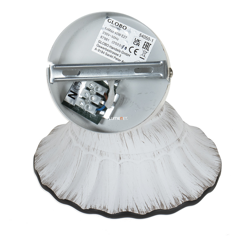 A Jowita Globo 54050-1 vintage spot lámpa antikolt fehér színben készült, fém és porcelán anyagok felhasználásával. Egy darab E27-es foglalattal rendelkezik, amely cserélhető fényforrás használatát teszi lehetővé, így a fényáram, fényszín, teljesítmény és színhőmérséklet a választott izzótól függ. A lámpatest méretei: 220 mm hosszúság, 170 mm szélesség, 165 mm magasság, tömege 0,79 kg. A termék IP20-as védettséggel rendelkezik, beltéri használatra alkalmas, fényforrást nem tartalmaz. A csomagolás mérete 20x20x24 cm. A lámpa nem szabályozható, fehér és fekete színvilággal illeszkedik a lakásvilágítás modern és klasszikus stílusaihoz. A gyártó a Globo.
