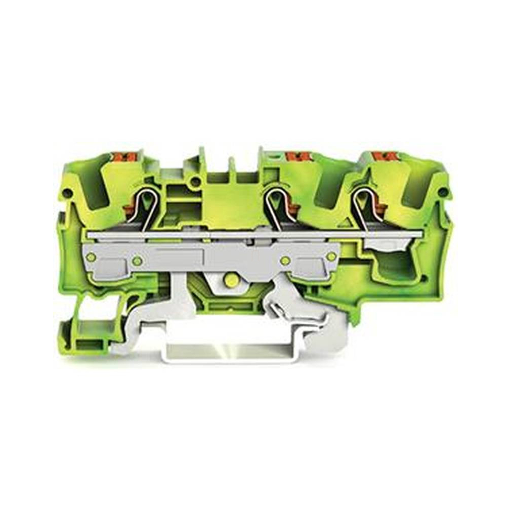 WAGO 2206-1307 3 vezetékes földelő sorkapocsnyomógombbal 6 mm2, zöld-sárga