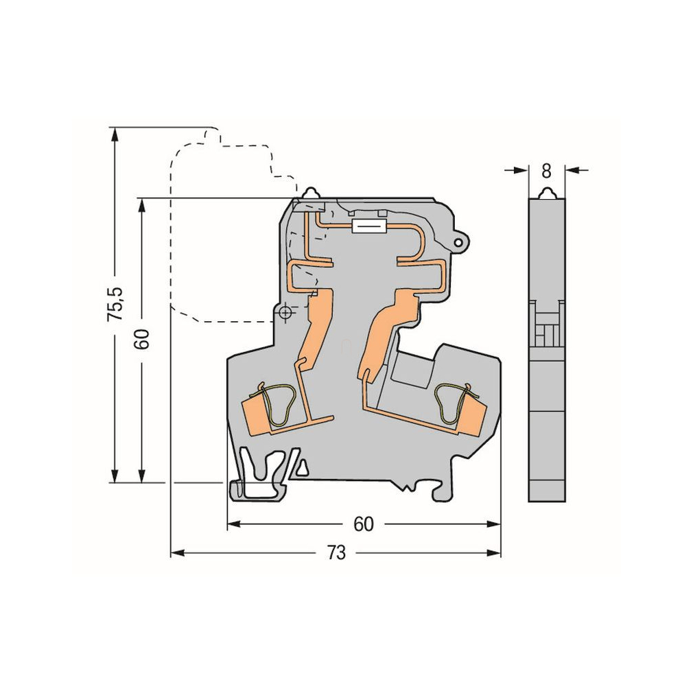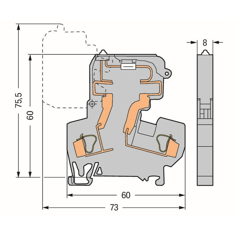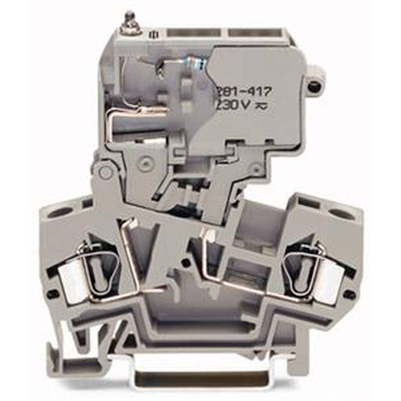 WAGO 281-611/281-418 2 vezetékes biztosító sorkapocsKifordítható biztosítékkal, szürke