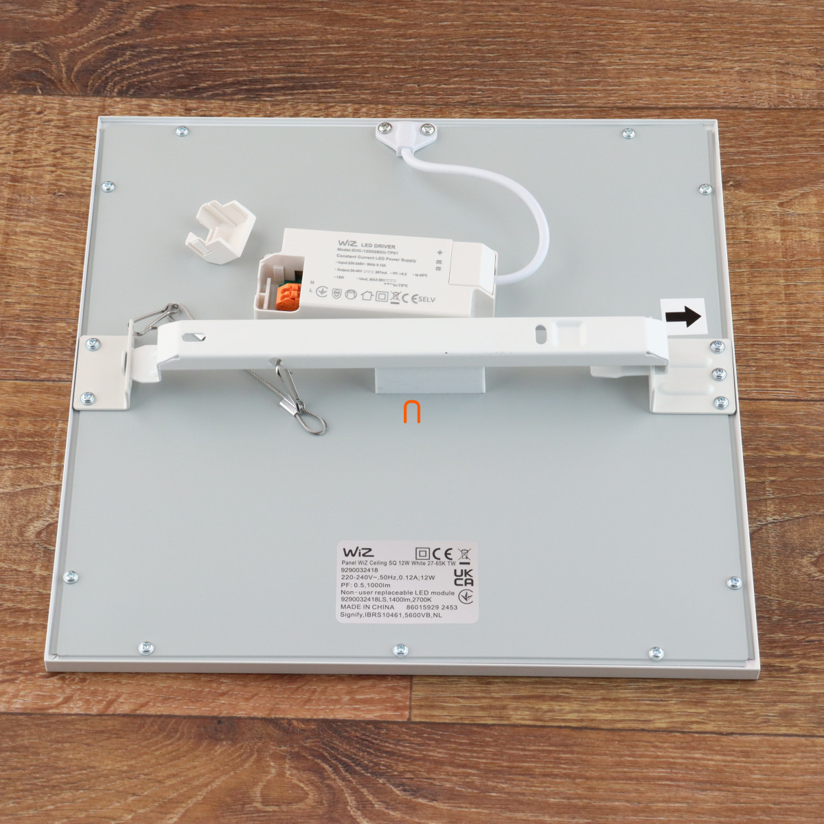 A WiZ Ceiling SQ 12W mennyezeti LED panel egy 1000 lumen fényáramú, energiatakarékos világítási megoldás, amely 2700 és 6500 Kelvin közötti, változtatható fehér fényt biztosít. A 12 wattos LED modul integrált, melynek átlagos élettartama eléri a 20 000 órát. A panel fehér színű, négyzet alakú kialakítású, mérete 300x300 mm, magassága 42 mm. Szabályozható fényerővel rendelkezik, amit Bluetooth vagy Wi-Fi kapcsolaton keresztül lehet vezérelni, így könnyedén igazítható a kívánt hangulathoz. A lámpatest IP20 védettséget nyújt, beltéri használatra alkalmas. A terméket a Signify gyártja, csomagolási méretei 31x31x6 cm.