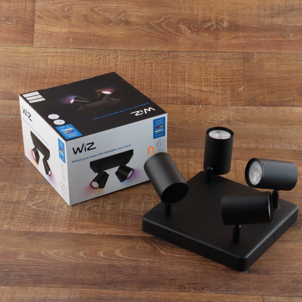 WiZ Imageo Wi-Fi, Bluetooth 4x5W 1380lm RGBW mennyezeti spot lámpa, négyzet alakú, fekete