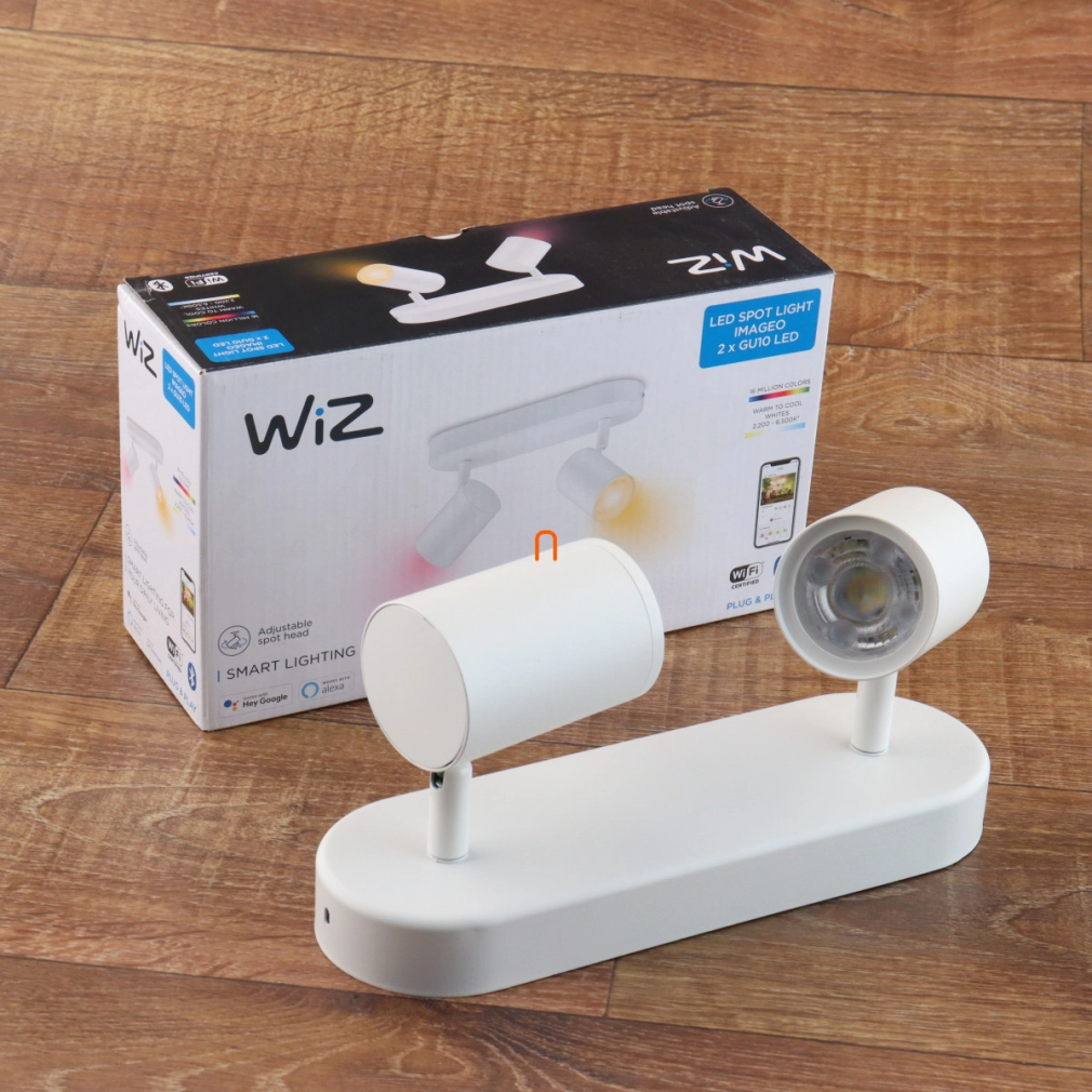A WiZ Imageo Wi-Fi/BT 2x5W 690lm 2200-6500K+RGB szabályozható LED spot lámpa egy modern, intelligens világítási megoldás, amely lehetővé teszi a fény színének és intenzitásának teljes körű szabályozását. A lámpatest beépített 2x5 wattos LED modullal rendelkezik, összesen 690 lumen fényárammal. A színhőmérséklet 2200 és 6500 Kelvin között állítható, emellett RGB funkcióval is ellátott, így a fehér fény mellett színes világítás is választható. A vezérlés Bluetooth vagy Wi-Fi kapcsolaton keresztül, applikációval történik, ami rugalmas és kényelmes használatot biztosít. A lámpatest fehér színű, fém anyagból készült, IP20 védettséggel rendelkezik, így beltéri használatra alkalmas. Átlagos élettartama 15 000 óra, méretei 250 mm hosszú, 105 mm széles és 123 mm magas. A termék LED modult tartalmaz, foglalatot nem igényel.