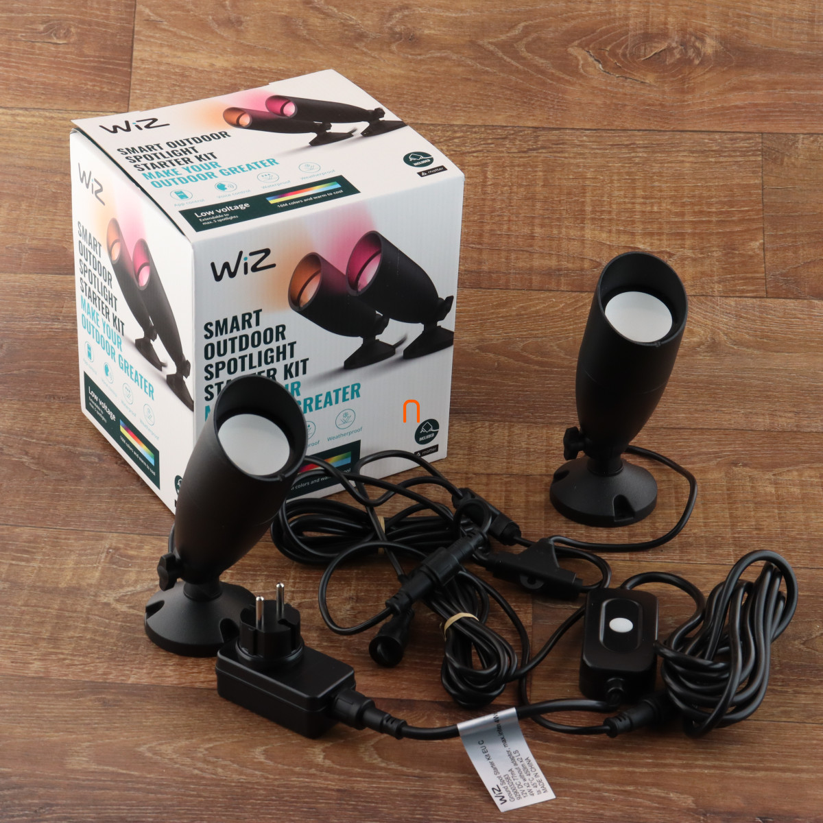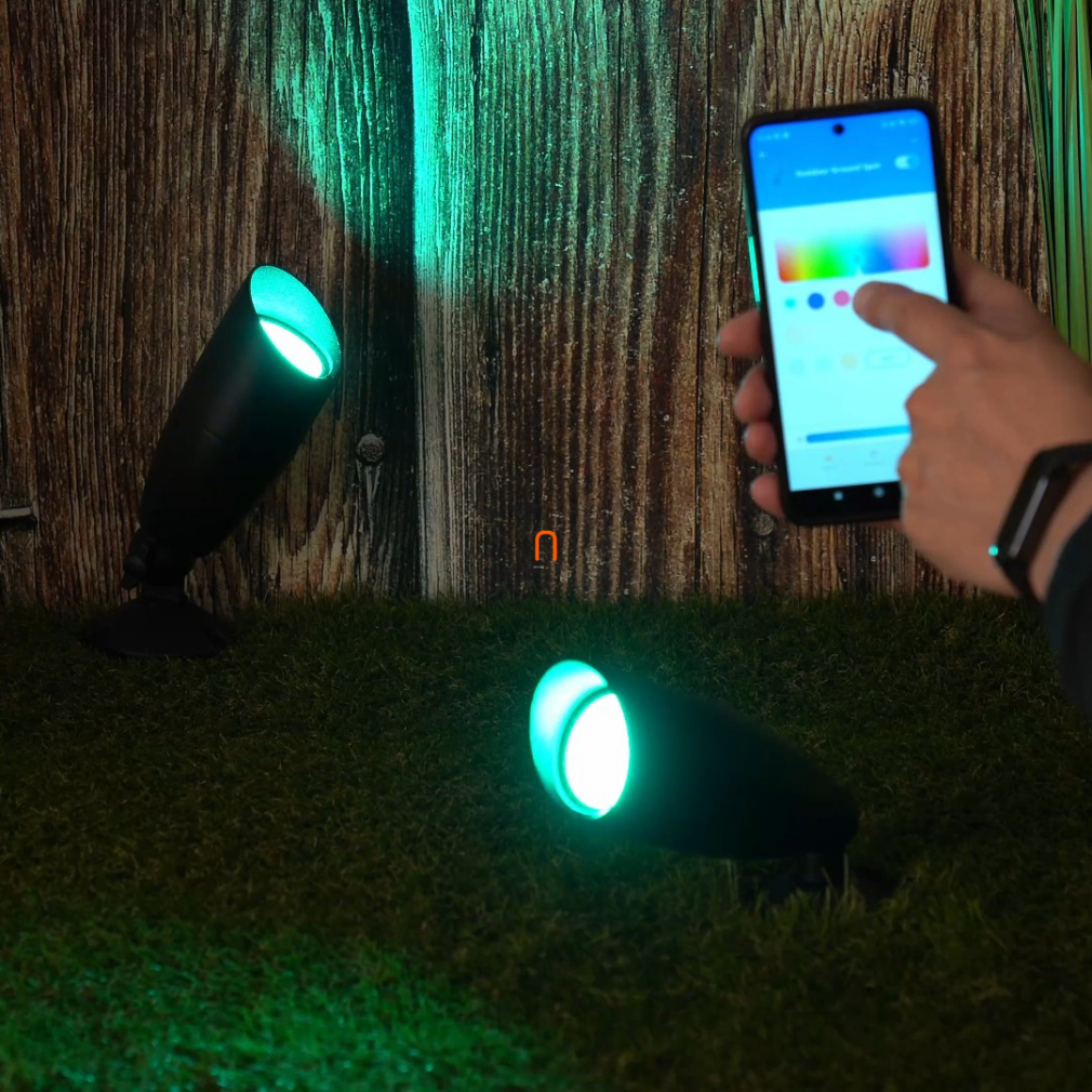 WiZ kültéri, földbe szúrható okos LED lámpa kezdő csomag hálózati adapterrel, 2700-5000 K, 2x10 W, 2 darabos (Ground Spot RGBW)
