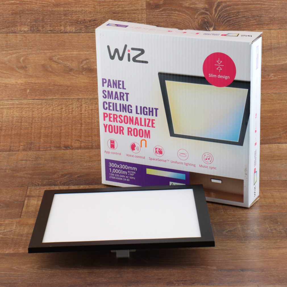 A WiZ okos LED panel hidegfehér/melegfehér, 12W egy extra vékony, modern kialakítású világítótest, amely 300x300 mm-es méretben és 42 mm-es magassággal készül. A panel 12 watt teljesítményű integrált LED modullal rendelkezik, amely 1000 lumen fényáramot biztosít, miközben 220-240 V névleges feszültségen üzemel. A fény színhőmérséklete 2700 és 6500 Kelvin között szabályozható, lehetővé téve a teljesen melegfehér és a hidegfehér árnyalatok közötti átmenetet. A fényerő és a színhőmérséklet applikációval vezérelhető Bluetooth vagy Wi-Fi kapcsolaton keresztül. A panel CRI értéke 80, ami jó színvisszaadást biztosít. IP20 védettségének köszönhetően beltéri használatra alkalmas. A termék műanyag és fém anyagok kombinációjából készült, fekete színben, energiaosztálya E, átlagos élettartama pedig 20 000 óra. A csomag okos fényforrást tartalmaz, gyártója a Signify.